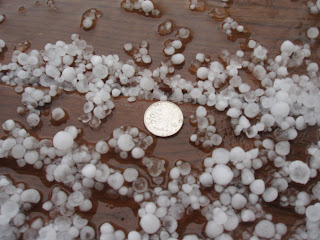 We just had a big hail storm come through here at 4:00 on Sunday afternoon. Only pea sized hail but lots of it. Came down hard for about 10 minutes then changed to rain then stopped. The sun is coming back out soon, but it was pretty cool while it lasted. Check some video below.